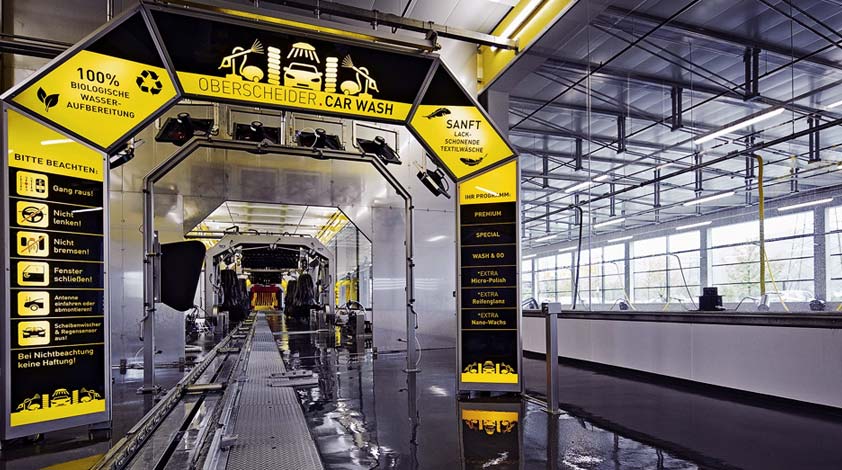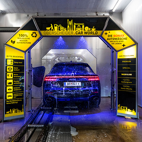 Oberscheider Carworld bietet eine der modernsten Waschstraßen Europas mit einer Kapazität von über 100 Fahrzeugen pro Stunde.